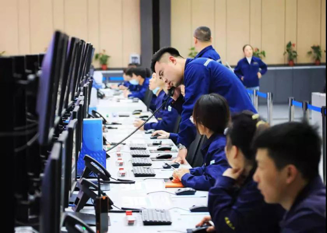 圖為陳玉千一行參觀晉南鋼鐵智能中心。