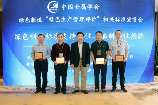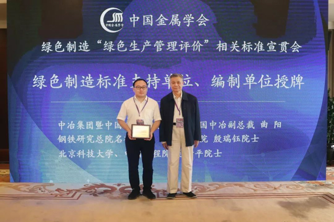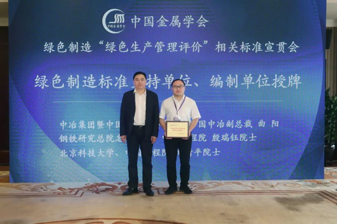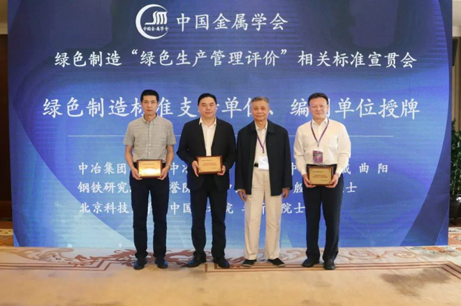 中冶集團暨中國中冶黨委常委、中國中冶副總裁、中國金屬學會副理事長曲陽為首鋼集團相關公司綠色制造標準工作支持單位授牌