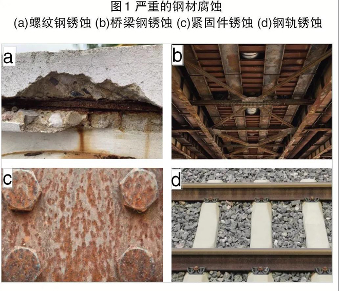 鋼鐵材料是量大面廣的材料,具有性能多樣化、容易獲得且成本較低、生產加工適用性廣泛、可循環利用等特點,廣泛應用于國民經濟和國防建設的各個領域。然而,量大面廣的普碳鋼(占比70%)和低合金鋼(占比20%)容易被腐蝕(鋼材腐蝕情況見圖1),需要尋找綠色環保且低成本的解決方案。稀土作為我國的戰略資源,開采過程中高豐度鑭鈰元素大量富余堆積,迫切需要加以合理消耗利用。