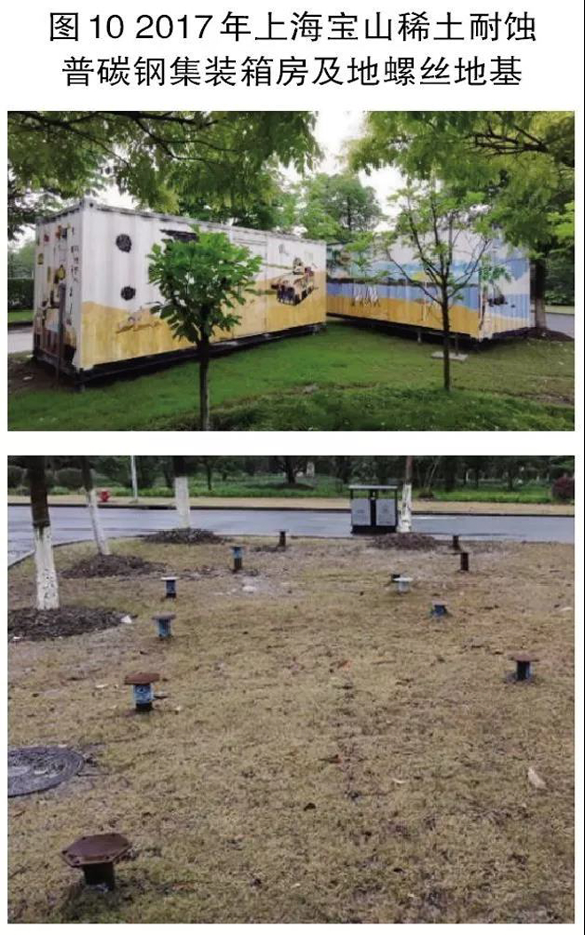 采用稀土耐蝕鋼制造地螺絲,可免鍍鋅處理,并延長使用壽命。山東威海、上海等地建設了基于地螺絲地基的輕鋼結構房等。經過2年戶外腐蝕試驗發現,未經涂覆的稀土耐蝕鋼地螺絲單面腐蝕率僅為0.1毫米/年,具有良好的耐腐蝕性能。(見圖9)