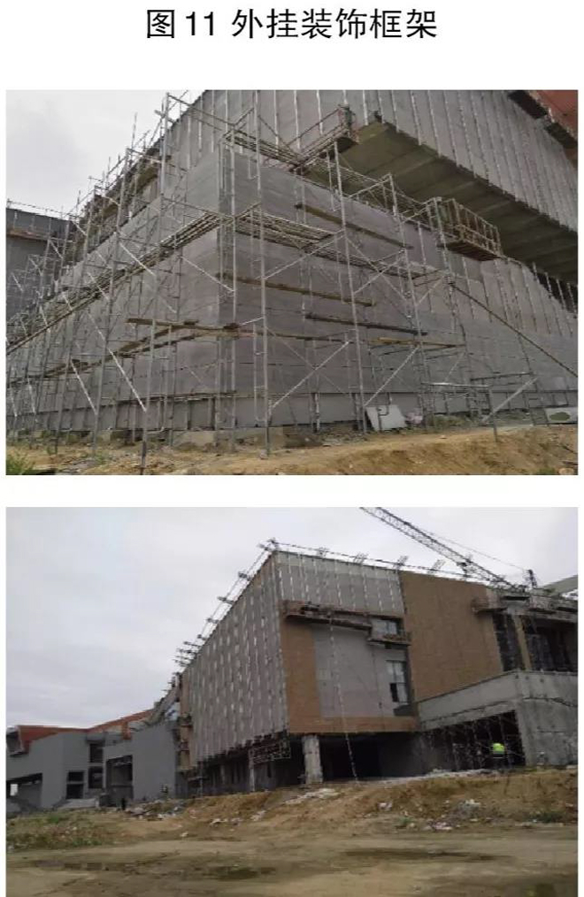 傳統的外掛裝飾裝修框架通常采用鍍鋅鋼材,不僅成本較高,且鍍鋅層在經歷風吹雨淋后極易破損剝落,影響結構壽命,降低安全系數。應用稀土耐蝕普碳鋼可免除鍍鋅、降低成本、延長壽命、提高安全性。2016年遼寧沈陽一建筑工程應用了稀土耐蝕普碳鋼,用戶單位反饋良好。(見圖11)