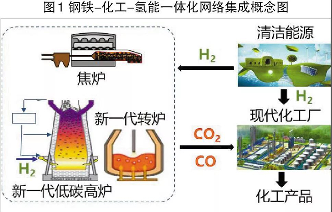 我國將來很長一段時間鋼鐵生產仍將以高爐-轉爐流程為主,應在加強氫冶金研發的同時,重點發展鋼鐵-化工聯產技術,即將鋼鐵副產含一氧化碳、二氧化碳尾氣進行捕集和分離,作為合成氣提供給化工廠用作加氫催化合成燃料、塑料、肥料等化工產品。這樣做既減少鋼鐵生產的二氧化碳排放,同時為化工行業輸入原本需要消耗化石或生物質才能獲得的碳資源。另外,由于鋼鐵系統副產氫能不足,須引入新能源行業,利用可再生能源制氫。因此,鋼鐵-化工聯產是通過鋼鐵、化工、氫能三大行業跨工業生產系統的網絡協作和一體化網絡集成,在保留高爐前提下實現高爐-轉爐長流程最合理、最可持續的減排方式,也是通過鋼鐵-化工協同,實現碳排放趨零的最徹底的解決方案。