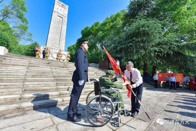 當(dāng)已經(jīng)90多歲高齡、新中國(guó)成立前入黨的老黨員、抗日老戰(zhàn)士、萍安鋼鐵離休干部朱江同志,將活動(dòng)主題旗授予遼寧方大集團(tuán)董事、副總裁,方大鋼鐵董事長(zhǎng),萍安鋼鐵董事長(zhǎng)黃智華同志時(shí),全場(chǎng)人員無(wú)不動(dòng)容,老人的眼角噙著激動(dòng)的淚花。