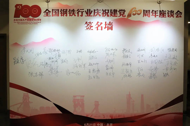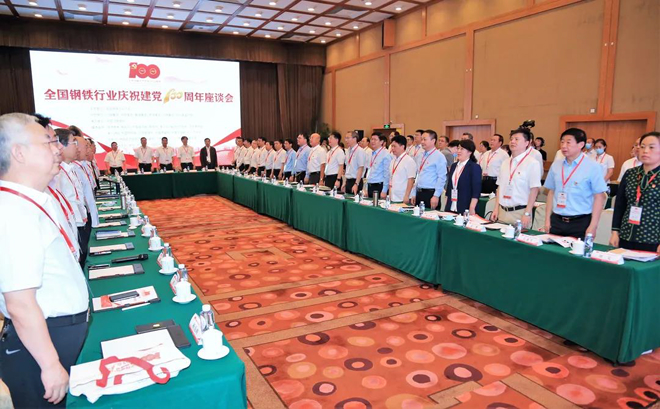 6月21日,由中國鋼鐵工業協會主辦,沙鋼集團、中國寶武、鞍鋼集團、首鋼集團、河鋼集團、中信泰富特鋼協辦,中國冶金報社承辦的全國鋼鐵行業慶祝建黨100周年座談會在北京香山飯店隆重召開,熱烈慶祝偉大的中國共產黨誕生100周年。