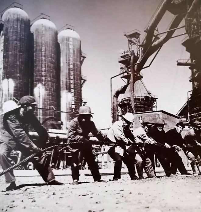 這一階段,在中國(guó)共產(chǎn)黨領(lǐng)導(dǎo)下,“集中力量辦大事”的制度優(yōu)越性得到充分體現(xiàn)和發(fā)揮。1950年6月份,中國(guó)共產(chǎn)黨七屆三中全會(huì)指出,黨在三年經(jīng)濟(jì)恢復(fù)時(shí)期(1949年底~1952年底)的中心任務(wù)是為爭(zhēng)取國(guó)家財(cái)政經(jīng)濟(jì)狀況的基本好轉(zhuǎn)而斗爭(zhēng),重點(diǎn)是恢復(fù)和發(fā)展生產(chǎn)。會(huì)議決議為三年經(jīng)濟(jì)恢復(fù)時(shí)期黨的工作規(guī)定了明確的策略路線和行動(dòng)綱領(lǐng)。為此,恢復(fù)、改造、擴(kuò)建舊中國(guó)遺留下來(lái)的鋼鐵生產(chǎn)工業(yè)裝備就成了當(dāng)務(wù)之急,會(huì)議也為鞍鋼、重鋼、本鋼等鋼企的恢復(fù)指引了方向、提供了動(dòng)力、鼓舞了斗志。