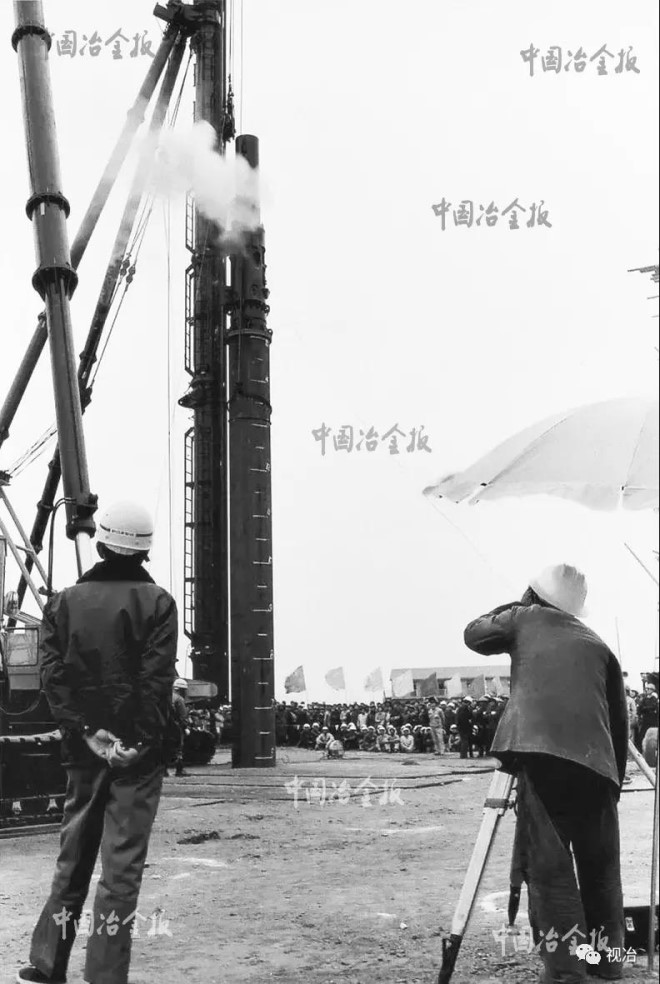 1978年12月23日,寶鋼工程正式動工。圖為該公程打下第一根樁時的情景。(本報資料圖片)