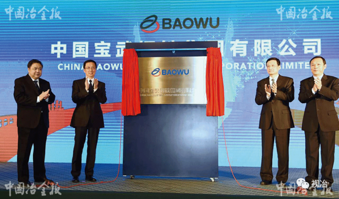 2016年12月1日,韓正、肖亞慶等領導為中國寶武鋼鐵集團有限公司銘牌揭幕。(劉杰 攝)