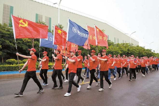 圖為6月4日,寶鋼湛江鋼鐵黨委舉行“永遠跟黨走”健步走活動。(湛江鋼鐵供圖)