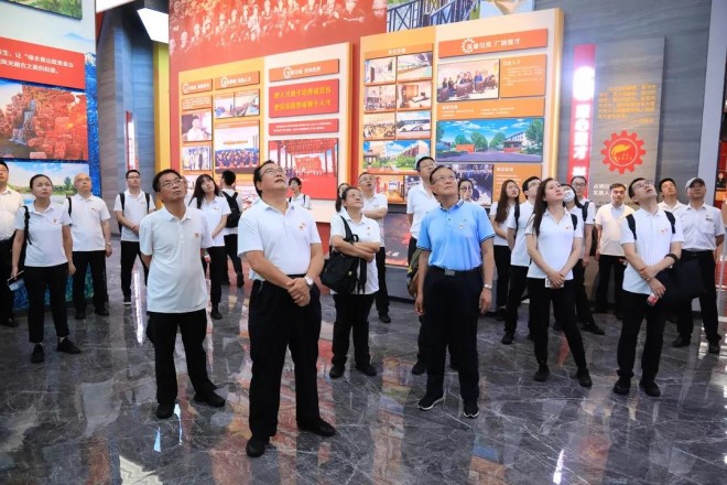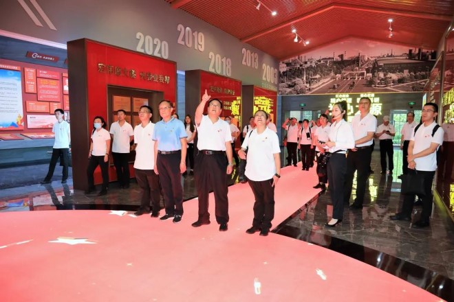 7月15日下午,全體人員首先參觀了宏興鋼鐵初心館。宏興鋼鐵2003年建立黨支部,2013年升格為黨總支,2018年升格為黨委,先后投入1.6億元建設(shè)了一批高水平黨群活動設(shè)施,其中包括以“點(diǎn)燃紅色引擎”為主題的宏興鋼鐵初心館。初心館中,大家認(rèn)真聆聽講解員對宏興鋼鐵多年來不忘初心、跨越發(fā)展歷程的講述,沉浸在一幅幅生動的圖片、一段段感人的故事中,了解獨(dú)具特色的宏興“好人文化”。
