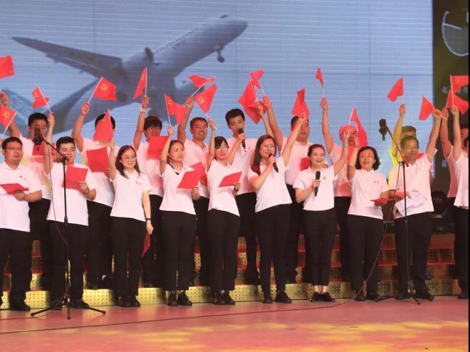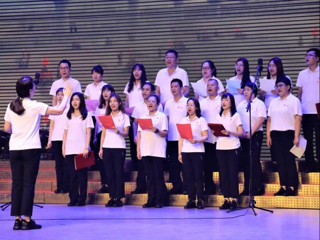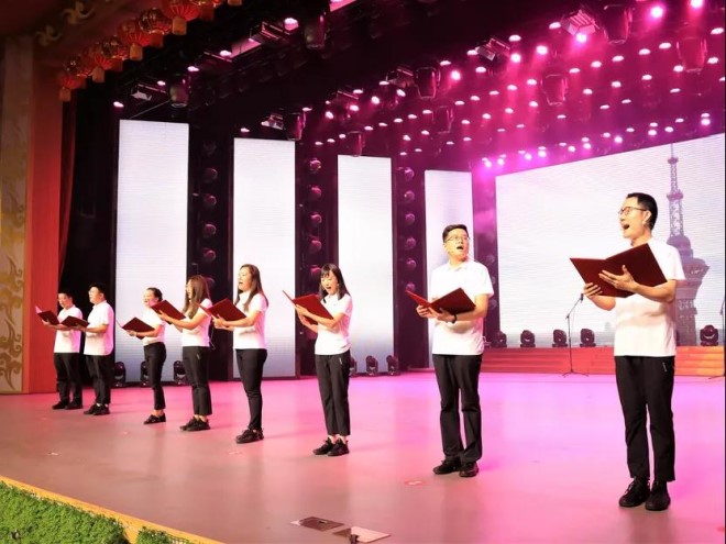 聯(lián)歡活動開始后,雙方表演了大合唱、詩朗誦、笛子獨(dú)奏、紅色歌舞等豐富多彩的節(jié)目,宏興俱樂部沉浸在一片紅色的海洋中。一首首振奮人心的紅歌、一段段優(yōu)美的舞蹈,為中國共產(chǎn)黨百歲華誕獻(xiàn)上一份深深祝福。