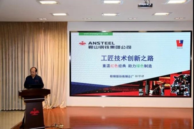 鞍鋼技能大師林學斌從“1號板坯連機三電系統”改造、 “三代連鑄結晶器自動加渣機研發”、“ RH提升氣體節能技術開發”的創新過程,介紹了為迎接智慧制造、綠色制造,技能大師工作室(站)、創新工作室不斷實踐“鞍鋼憲法”精神,持續在煉鋼生產、技術攻關、發明創新、技術成果轉化、傳藝帶徒等方面不斷付諸于實踐,在解決生產重點、難點問題上大顯身手的經驗。