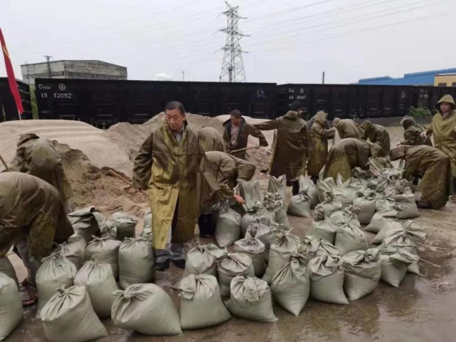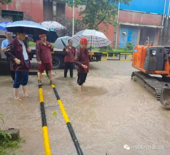 圖為沙鋼永興特鋼防汛抗洪搶險救援現場