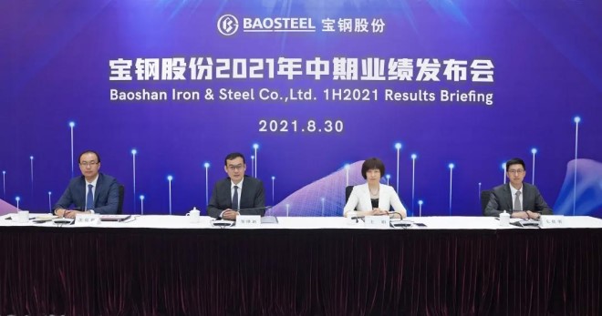 8月30日,寶鋼股份召開2021年中期業績發布會。當天上午,寶鋼股份還在全景網投資者關系平臺舉行2021年中期業績網上說明會。寶鋼股份董事長鄒繼新,董事、總經理盛更紅,財務總監兼董事會秘書王娟及相關部門參會并與廣大投資者進行了在線互動。