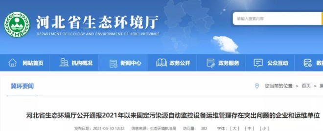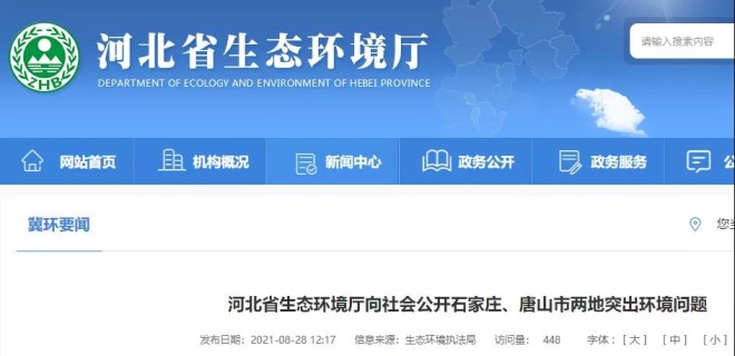 近日,河北省生態(tài)環(huán)境廳官網(wǎng)對有關(guān)環(huán)境問題進(jìn)行了通報。