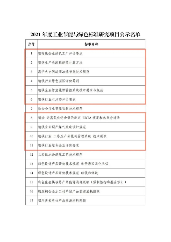 公示!10個(gè)鋼鐵項(xiàng)目入選2021年度工業(yè)節(jié)能與綠色標(biāo)準(zhǔn)研究項(xiàng)目