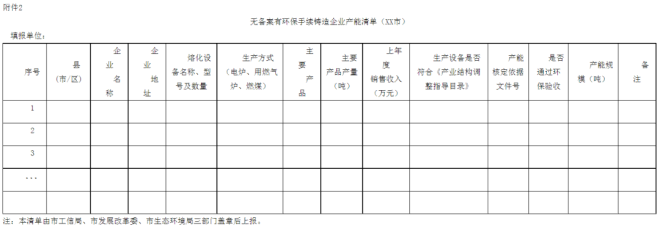 2.無備案有環(huán)保手續(xù)鑄造企業(yè)產(chǎn)能清單(XX市)