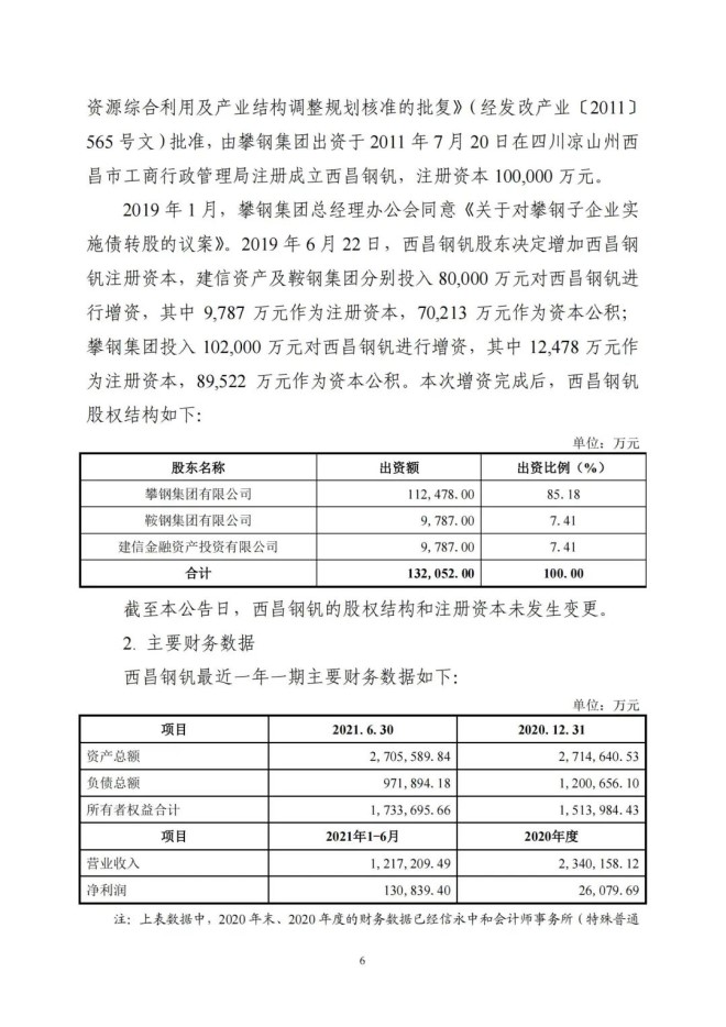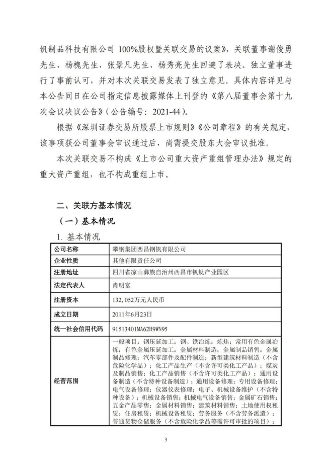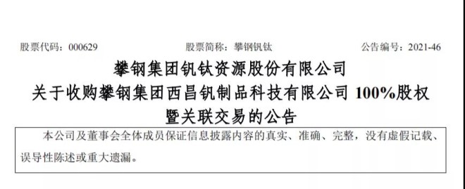 46.11億元!攀鋼釩鈦收購西昌鋼釩100%股權