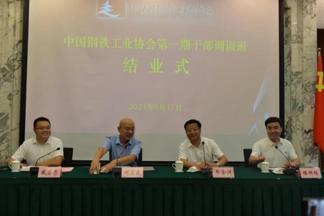 9月17日,中國鋼鐵工業協會第一期干部調訓班在中國浦東干部學院完成全部課程,順利結業。中國鋼鐵工業協會黨委書記、執行會長何文波,中國浦東干部學院副院長鄭金洲、對外交流與培訓開發部項目負責人眭輝棟出席結業式,鋼協組織人事部(黨委辦公室)副主任(主持工作)臧若愚主持會議。