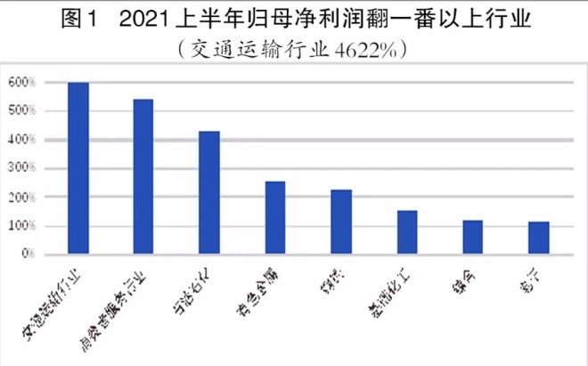 機械設備行業歸母凈利潤增長在40%左右。機械設備行業相關434家上市公司整體營收為8503億元,同比增長32.88%;歸母凈利潤為687億元,同比增長40.95%,與2019年同期相比增長63.88%;今年上半年90%以上公司實現盈利,歸母凈利潤同比正增長公司占8成,凈利潤率為8.39%,同比上升1個百分點。在各子行業中,金屬制品凈利潤同比增速達到了648%。汽車行業歸母凈利潤增長在80%左右,相關上市公司汽車銷量為1289萬輛,同比增長25.6%;營收為1.85萬億元(行業整體是2.09萬億元),同比增長34.77%;凈利潤為803.71億元,同比增長82.17%,凈利潤率約為4.25%;新能源汽車增長迅速,但汽車行業銷量、凈利潤率在第二季度均環比下降,銷量受“缺芯”拖累同比下降2.7%,凈利潤率下降主要受鋼材、有色金屬等原材料價格上漲影響。家電行業歸母凈利潤增長在45%左右。相關45家上市公司整體營收為6551億元,同比增長30.68%;歸母凈利潤為441.4億元,同比增長43.98%,其中第二季度實現256.6億元,同比增長16.86%,受原材料成本上漲影響行業整體毛利率同比下滑0.87個百分點至22.97%。