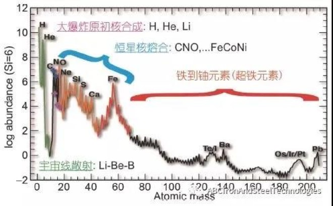 圖為太陽系元素豐度及可能的核合成起源[1]