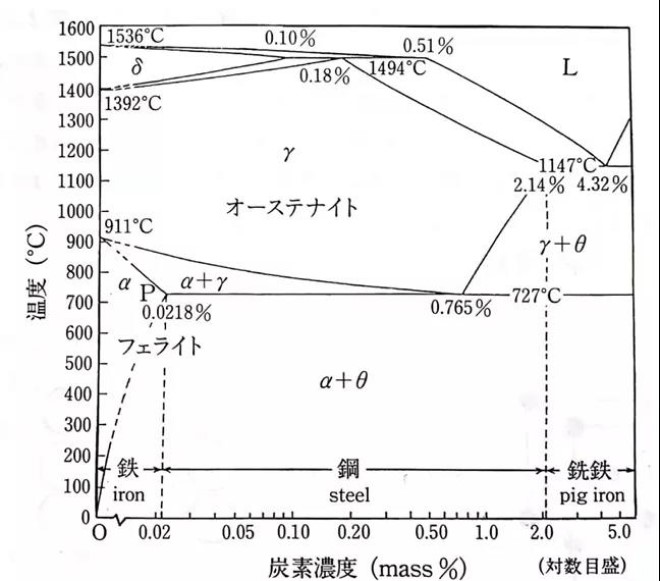 圖為鐵碳相圖(對(duì)數(shù)橫坐標(biāo))