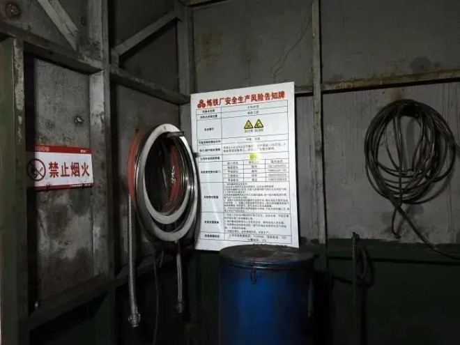在該鋼鐵公司煉鋼廠轉爐的爐下鄰近區域,明查暗訪組發現1處操作室的門和1處備件庫房的門均朝向熔融金屬吊運側。安全專家指出,前述建筑物的門朝向熔融金屬吊運側與現行安全標準規定不符,存在較大安全風險,一旦發生熔融金屬罐體傾翻、傾覆事故,極有可能威脅作業人員生命安全。