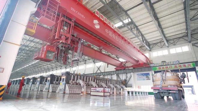 圖為“沈冶機械”生產的鋁電解多功能機組在用戶現場工作中