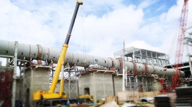 圖為“沈冶機械”生產的緬甸達貢山鎳礦項目回轉窯在用戶現場安裝調試中