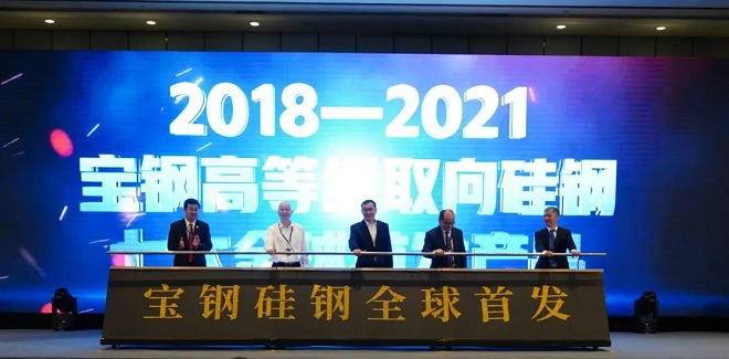 圖為2021年5月13日,寶鋼股份高等級取向硅鋼七大全球首發產品揭幕。