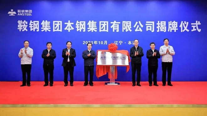 10月12日,本鋼集團有限公司完成工商變更登記,自此在法律意義上正式成為鞍鋼集團控股二級子企業。10月15日,鞍鋼集團本鋼集團有限公司揭牌儀式在遼寧本溪舉行。鞍鋼重組本鋼后,目前正在按照一年內實質性整合、一體化運作,三年內逐步融合化合的具體目標,在資源、研發、采購、產線、物流、銷售等方面加快推進整合融合,爭取早日實現“1+1>2”的效果,真正成為全國國企改革和鋼鐵行業重組的成功典范。