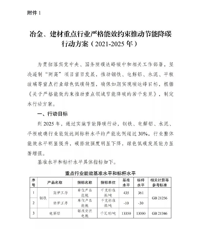 ▼冶金、建材重點行業(yè)嚴(yán)格能效約束推動節(jié)能降碳行動方案(2021-2025年)