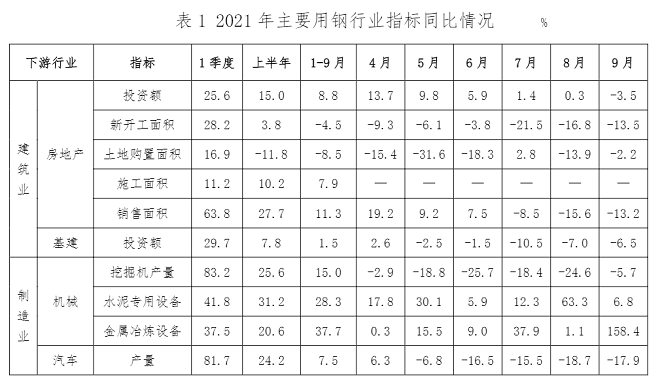 1-9月主要用鋼行業總體保持增長,部分指標同比下降