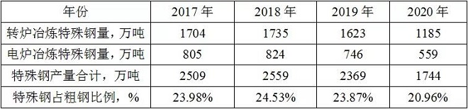 2020年日本轉爐鋼為6205萬噸,同比大幅下降了17.2%,電爐鋼產量為2115萬噸,同比下降了13.0%,轉爐鋼和電爐鋼產量占比分別為74.6%和25.4%(詳見表1)。按鋼種劃分,2020年粗鋼中普碳鋼產量為6576萬噸(同比減少13.0%),特殊鋼產量為1744萬噸(同比減少26.4%)。