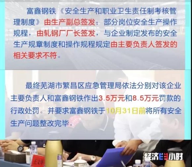 除了現(xiàn)場(chǎng)檢查之外,明查暗訪組在查閱企業(yè)相關(guān)材料的過程中發(fā)現(xiàn),富鑫鋼鐵存在全員安全生產(chǎn)責(zé)任制不健全的問題。