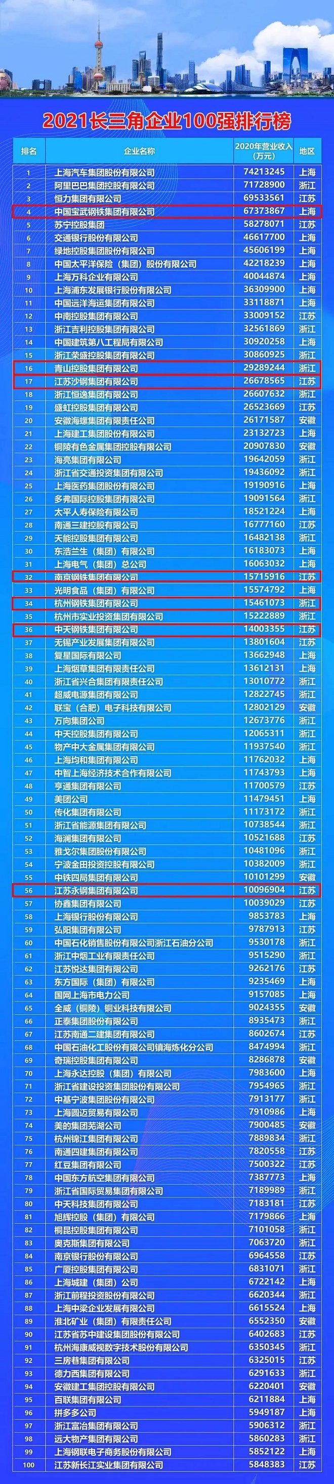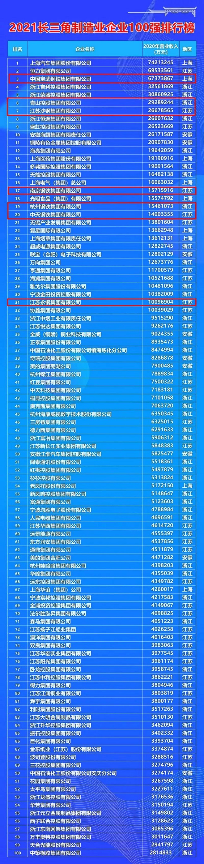 2021長(zhǎng)三角百?gòu)?qiáng)企業(yè)排行榜出爐!這些鋼企上榜