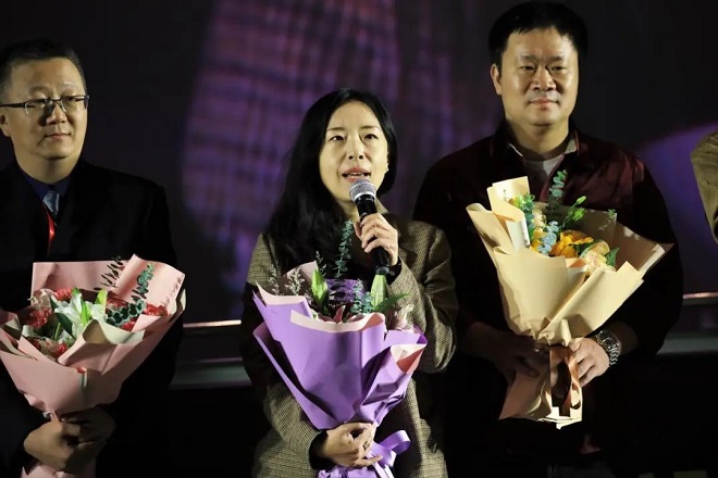 座談會上,工作人員向攝制組成員獻花表達謝意,攝制組成員則分享了拍攝感受。