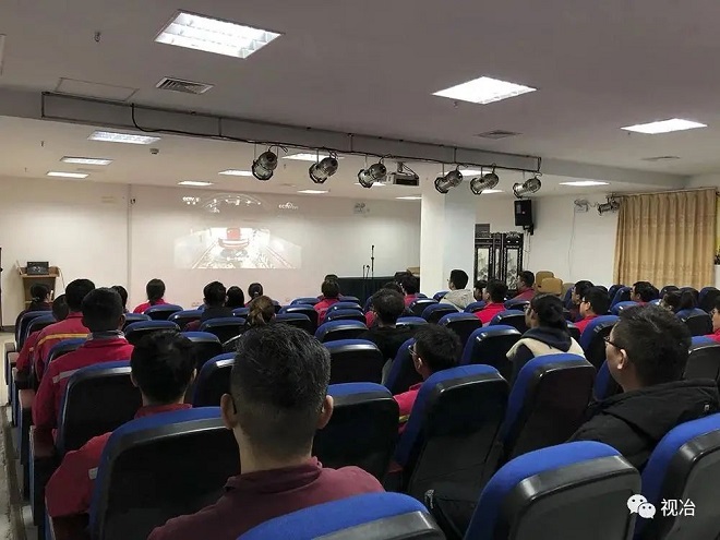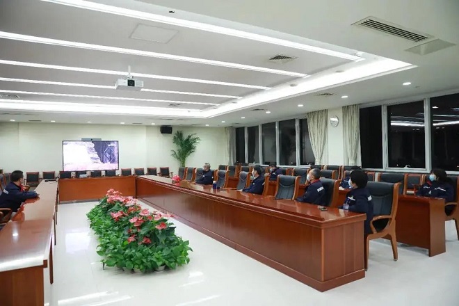 ▲新天鋼公司六樓西大會議室,新天鋼總經理闞永海、黨委書記張紀星帶領職工收看《鋼鐵脊梁》,并召開交流座談會