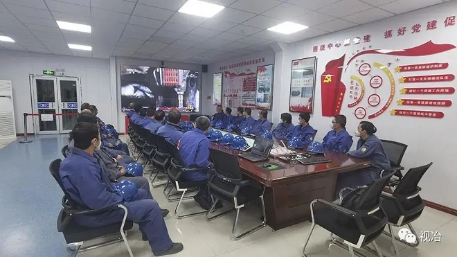 ▲甘肅省嘉峪關市酒鋼集團宏興股份公司碳鋼薄板廠熱軋作業區黨建活動室,酒鋼員工們觀看紀錄片