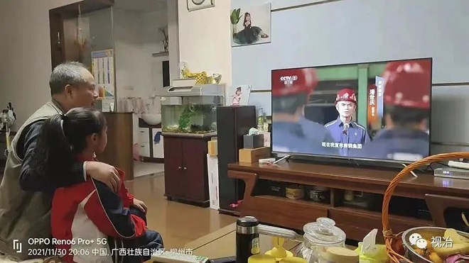 ▲柳鋼職工楊大吉家觀看紀錄片