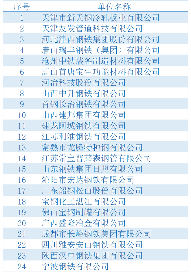 經統計,此次共有24家鋼鐵企業進入綠色工廠擬選名單: