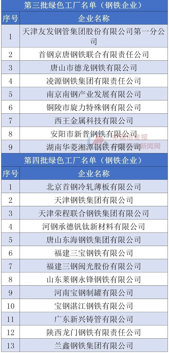 已公布的鋼鐵企業“綠色工廠”名單: