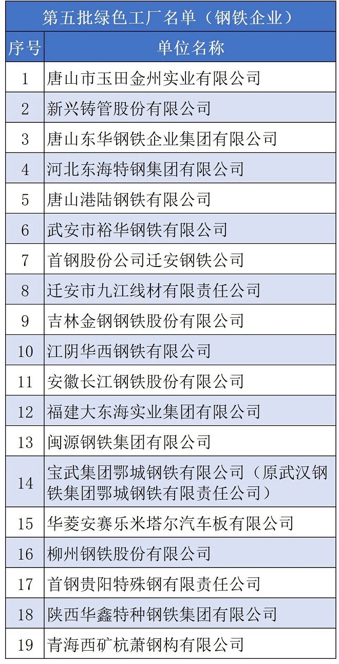 此前,工業和信息化部曾分五批公示了綠色工廠名單。據統計,我國鋼鐵企業已有69家獲得“綠色工廠”稱號。因此,我國鋼鐵企業“綠色工廠”有望增至93家。