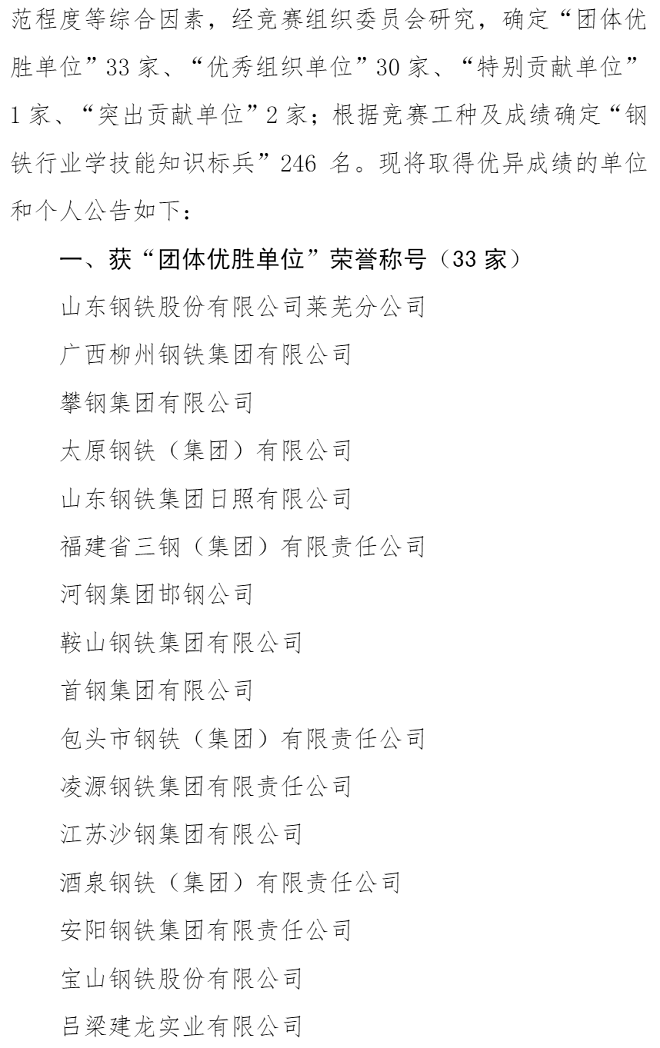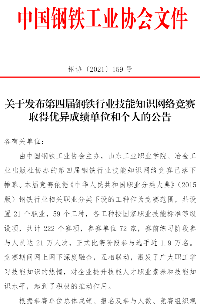 第四屆鋼鐵行業(yè)技能知識網(wǎng)絡(luò)競賽優(yōu)異成績單位和個人名單出爐