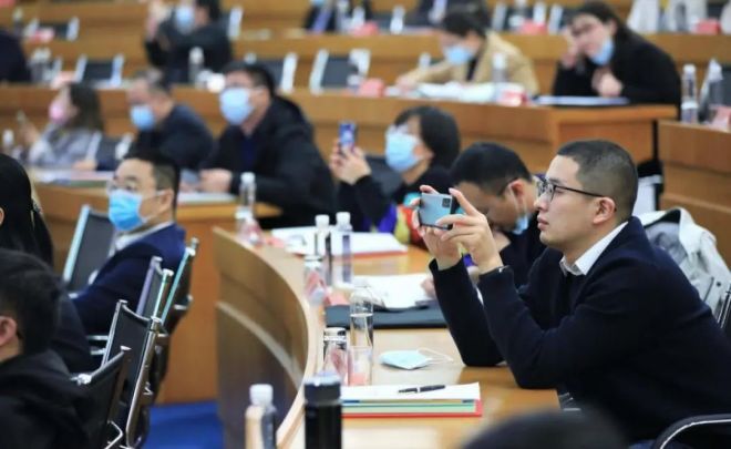 圖為與會代表高度關注會議內容,紛紛拿出手機拍攝記錄