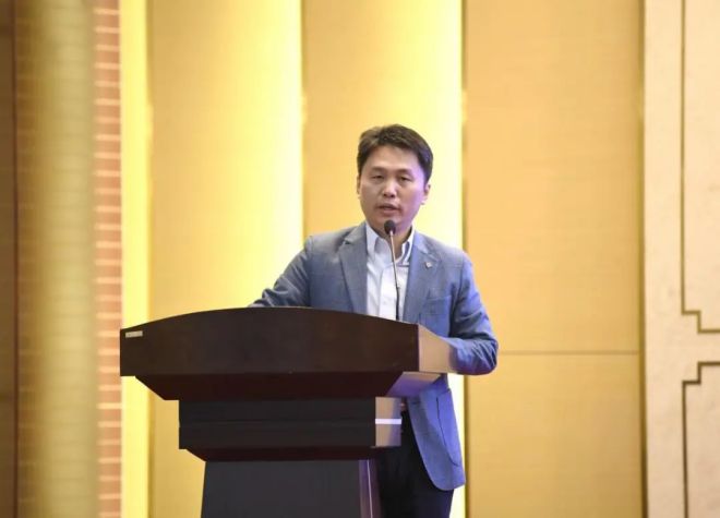 圖為中國(guó)行業(yè)報(bào)協(xié)會(huì)會(huì)長(zhǎng)張超文大會(huì)發(fā)言。