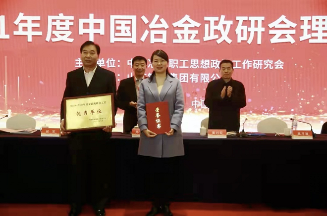 會議對冶金企業(yè)獲得2021年度中國思想政治工作研究會優(yōu)秀個人和集體進(jìn)行了表彰并頒獎。首鋼京唐公司獲得了2021年度中國思想政治研究會工作優(yōu)秀單位稱號,南鋼黨委書記、董事長黃一新榮獲2021年度中國思想政治工作研究會工作優(yōu)秀個人稱號。邱銀富和王芳作為代表接受頒獎。