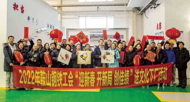 1月18日~19日,鞍鋼集團鞍山鋼鐵工會舉辦了“迎新春 開新局 創佳績”送文化下廠活動(如圖)。活動中,鞍鋼文聯書畫家們把一副副飽含美好祝福的春聯和一幅幅滿是喜慶吉祥的書畫作品,送給一線職工,營造了濃厚的節日氛圍。(通訊員 邱梅 /文 特約通訊員 黃獻東/ 攝)