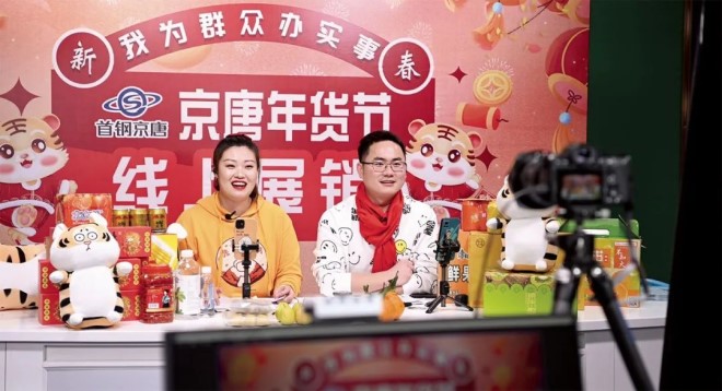 1月22日,首鋼京唐選取四大類28種優惠商品,利用首鋼京唐微信視頻號直播平臺,采取線上購買、線下自提的方式直播購物,把最優惠的價格和最大的福利送給職工及家屬。活動中,共有5100多名職工觀看直播,1160多名職工線上采購到稱心的商品。(記者 楊立文 攝)