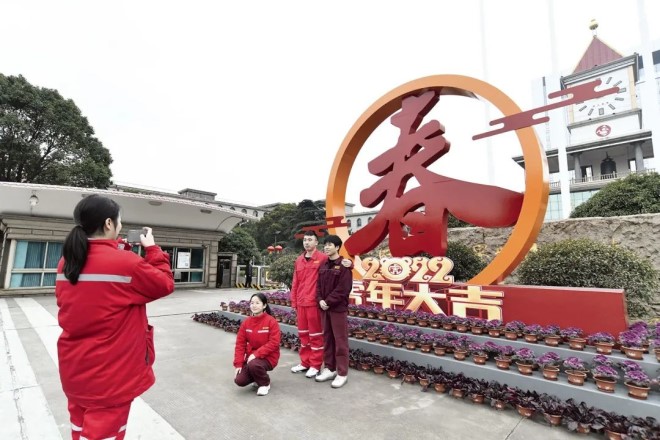 春節即將到來,為確保沙鋼干部員工特別是留在江蘇張家港過年的職工度過一個歡樂、祥和的春節,沙鋼精心策劃系列暖心活動,營造出韻味十足的節日氛圍。圖為沙鋼職工紛紛與廠區里的虎年春節主題景觀合影。(黃超/文 孫靜波 /攝)