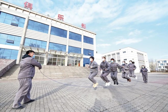 1月25日,河鋼唐鋼行政福利處職工在業余時間進行跳大繩比賽(如圖)。春節前夕,該處工會組織職工開展“云健身 迎新年”系列文體活動,共有120余名職工通過線下錄制視頻、線上評比的方式參加了跳繩、踢毽子、俯臥撐等多項健身運動。(王海艷/文 趙輝/攝)